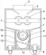 进入破袋机的物料立即通过旋转动刀将物料带到动刀与定刀之间做旋转运动,定刀成半圆弧带